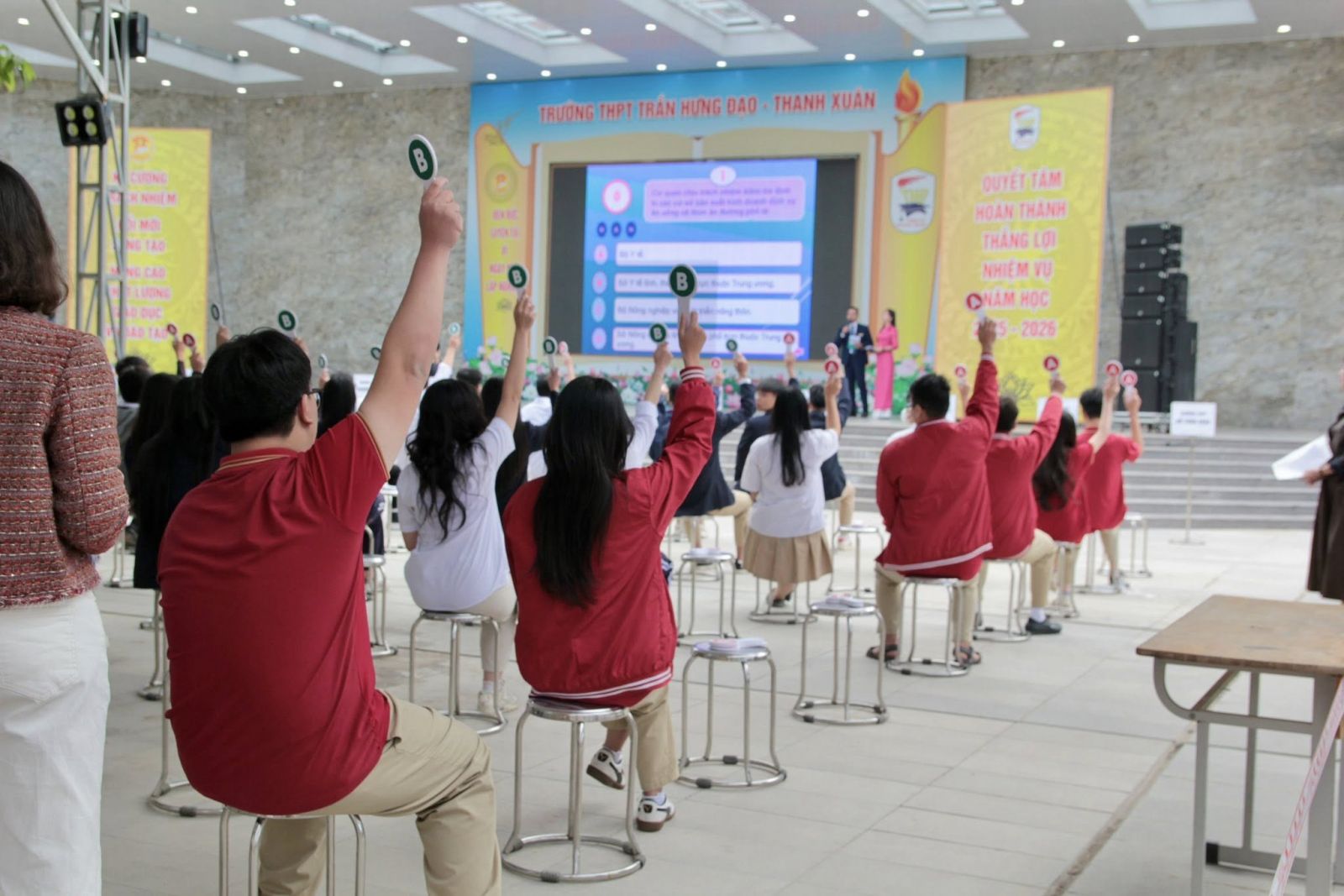Sáng 22/11, tại sân trường THPT Trần Hưng Đạo, cuộc thi Tìm hiểu pháp luật dành cho học sinh THPT năm 2025 đã diễn ra đầy khí thế với sự tham gia của 14 trường trong Cụm THPT số 4 Hà Nội. Không khí sôi động, căng thẳng và hấp dẫn đã bao trùm toàn sân trường ngay từ những phút đầu tiên.